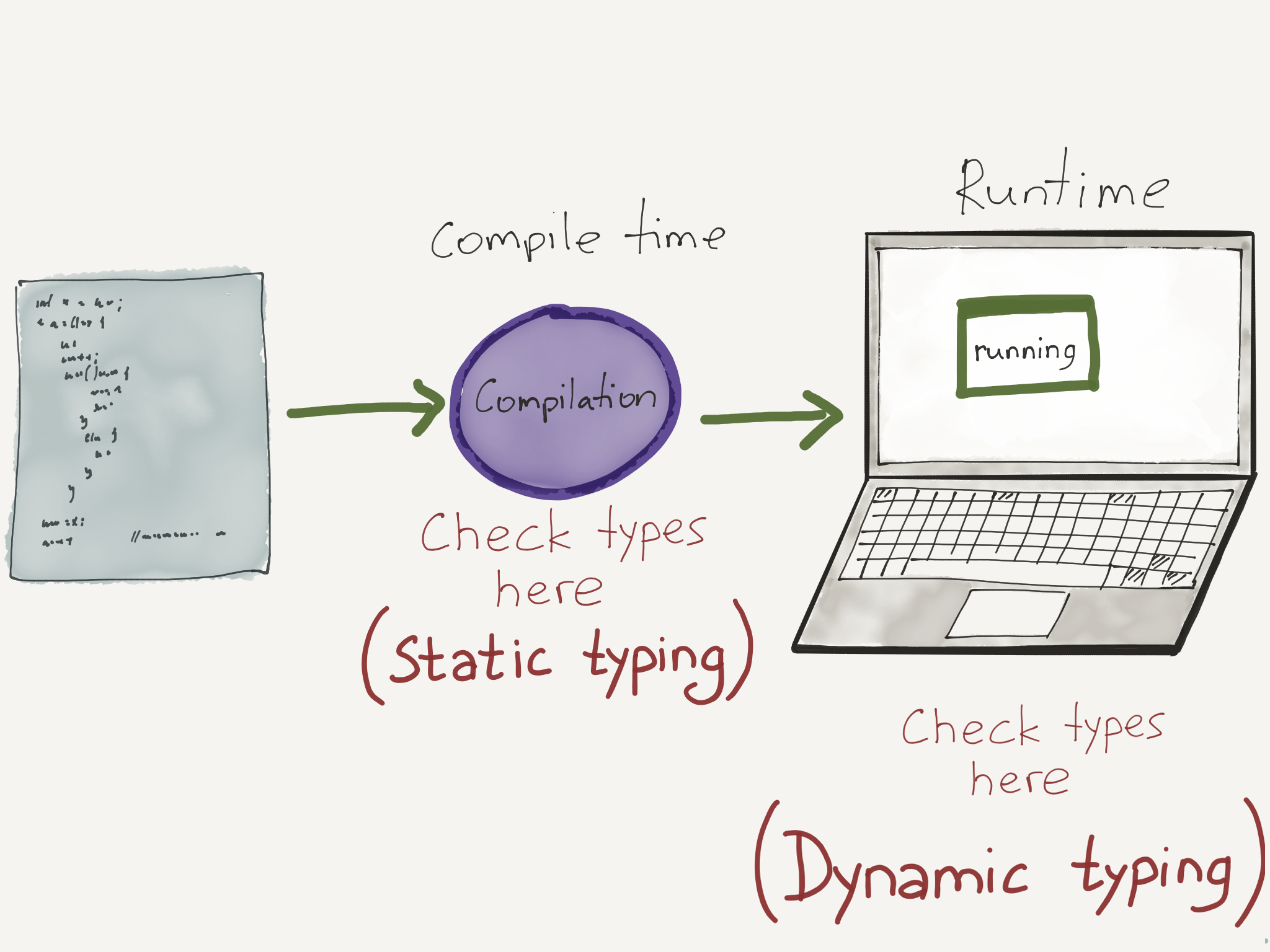 In order to understand the difference between dynamic and static typing, we first have to look at how written programs become actual running programs.